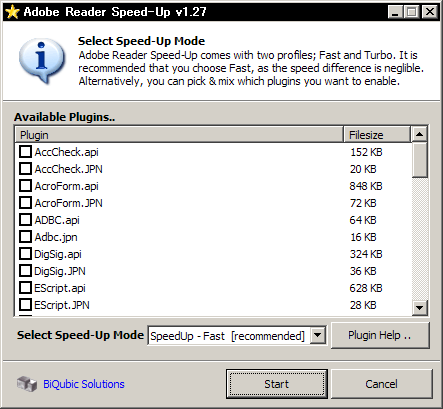 OS ではありませんが、Adobe Reader(旧名:Adobe Acrobat Reader) の起動を高速化することができます。「Adobe Reader SpeedUp」というソフトウェアを利用します(サードパーティ製・英語)。Adobe Reader は、起動時に多くのプラグインを読み込み、これが起動時間を長くしています。起動時に読み込むプラグインの数を制限することにより、Adobe Reader の高速起動が可能になります。
