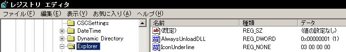 レジストリエディタを起動し、HKEY_LOCAL_MACHINE\SOFTWARE\Microsoft\Windows\CurrentVersion\Explorer\ を開きます。ここに DWORD 値 AlwaysUnloadDLL を新規作成し、16進数で値を 1 とします(図33)。